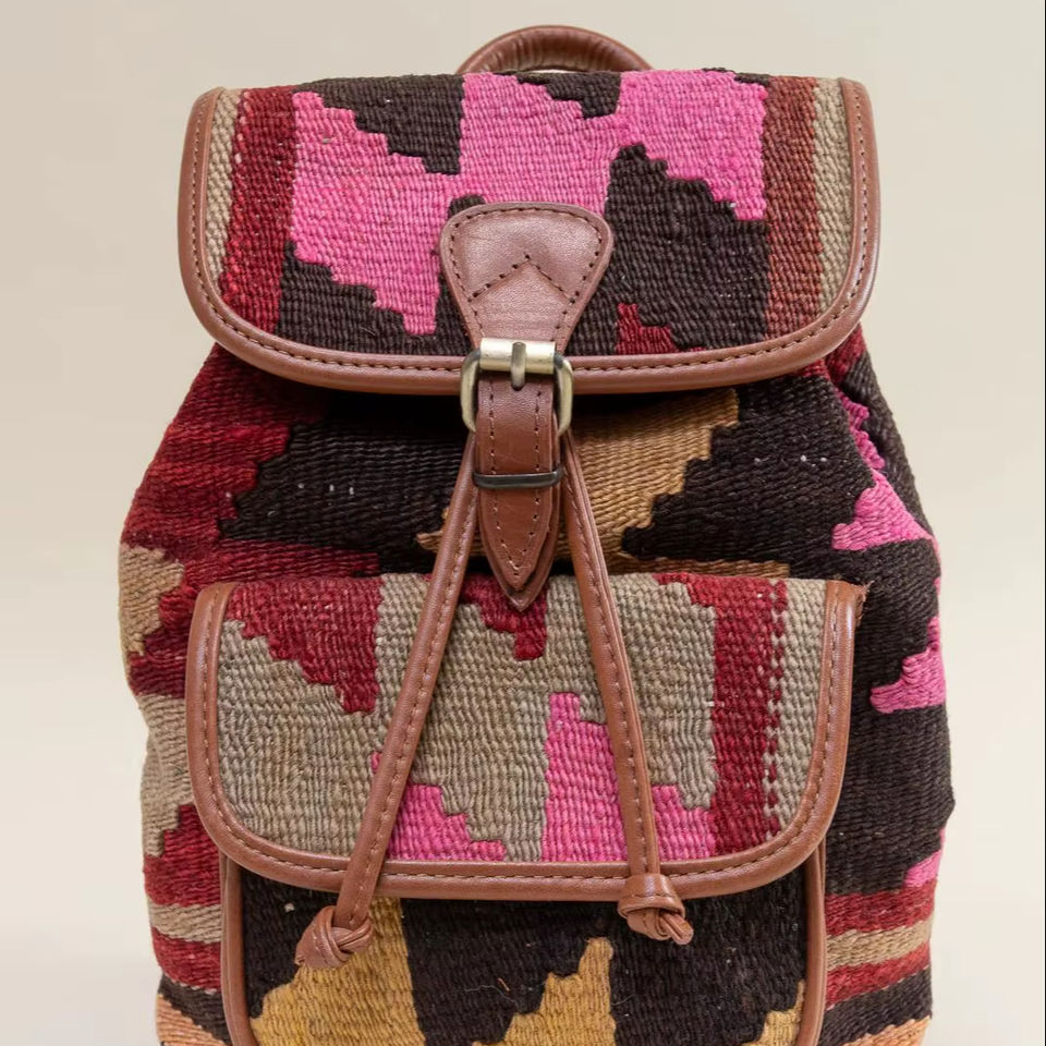 Handmade CROWN BAGS High Quality Vintage Western Fashion Canvas Backpack Embroidery Women's Stylish Leather Lining Zipper