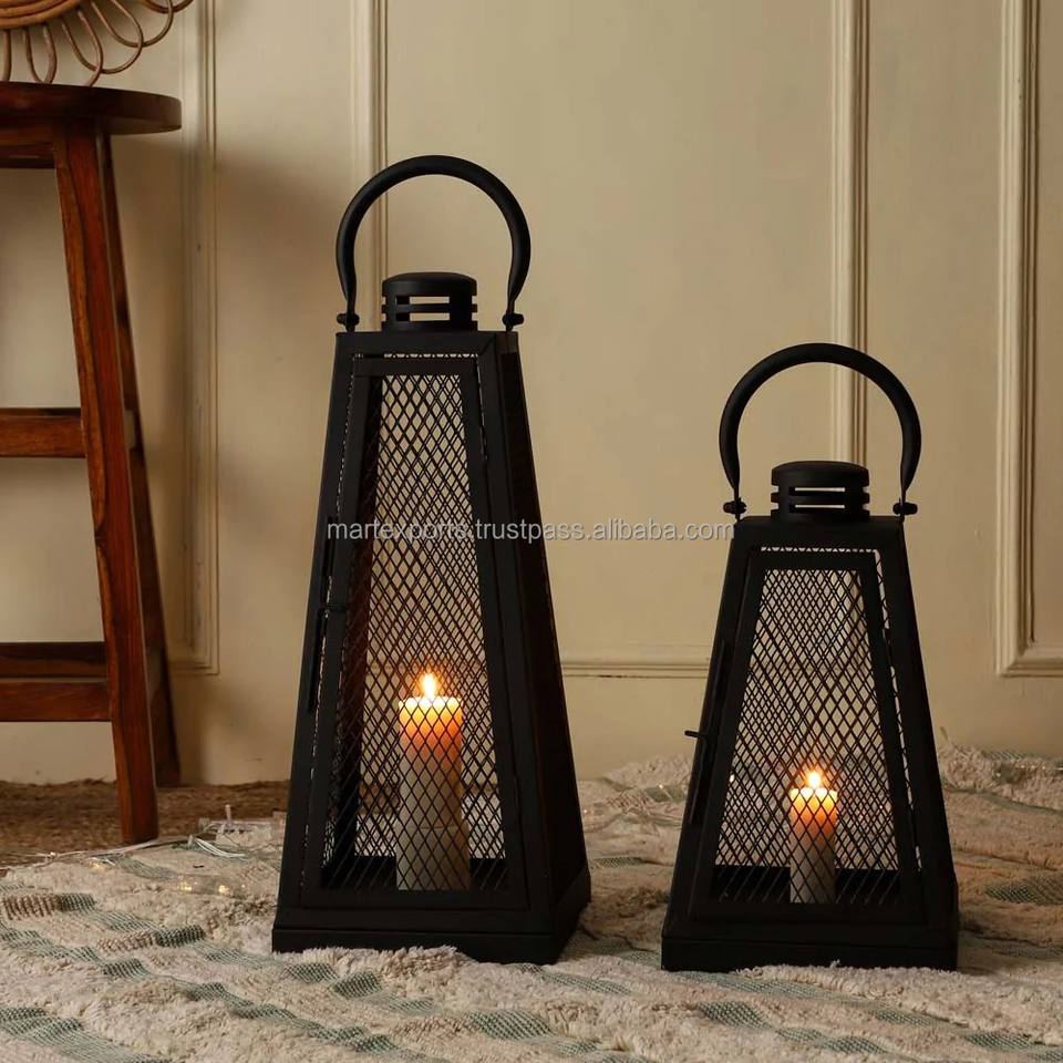 Handmade Portable Square Candle Lantern with Modern Perforated Metal Design for Home Decoration and Indoor/Outdoor Christmas Use