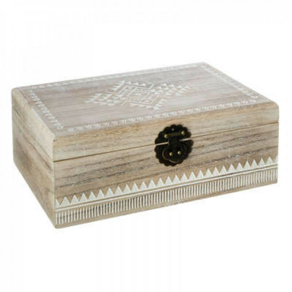 Handmade Carved Mango Wood Jewelry Box With Whitewashed Floral Design Vintage Decorative Storage Gift Box For Home Decor