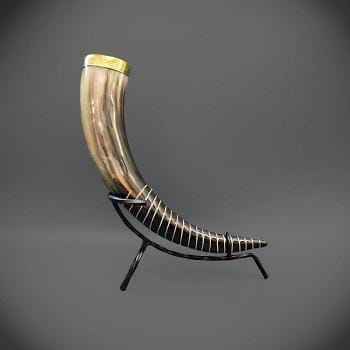 Handmade Carved Viking Drinking Horn with Hand-Forged Metal Stand Custom Norse Mead Mug for Gifting, Home Decor & Collectors