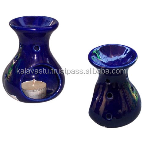 Handmade Ceramic Tealight & Incense Oil Burner Wood Fragrance Diffuser for Home Aroma & Scented Room Decor for Essential Oils
