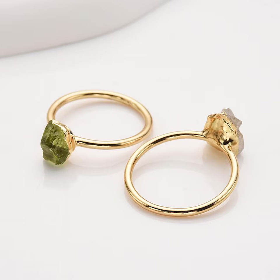 Handmade Certified 925 Sterling Silver Vintage Bezel Set Unisex Rings Uneven Shape Mix Raw Gems Electroplated 8X10MM HARI OM