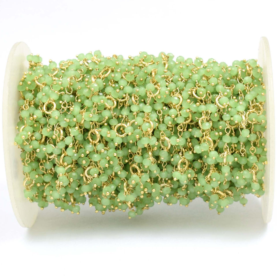 Handmade Chain Rosary with Peru Chalcedony Beads Brass Findings Plated in CZ Jewelry Gemstone Chain From Peru
