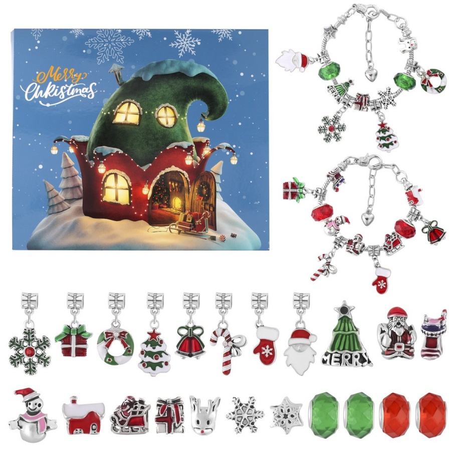 Handmade Christmas Bead Jewelry Gift Box 24 Day Countdown Calendar DIY Blind Box for Girls