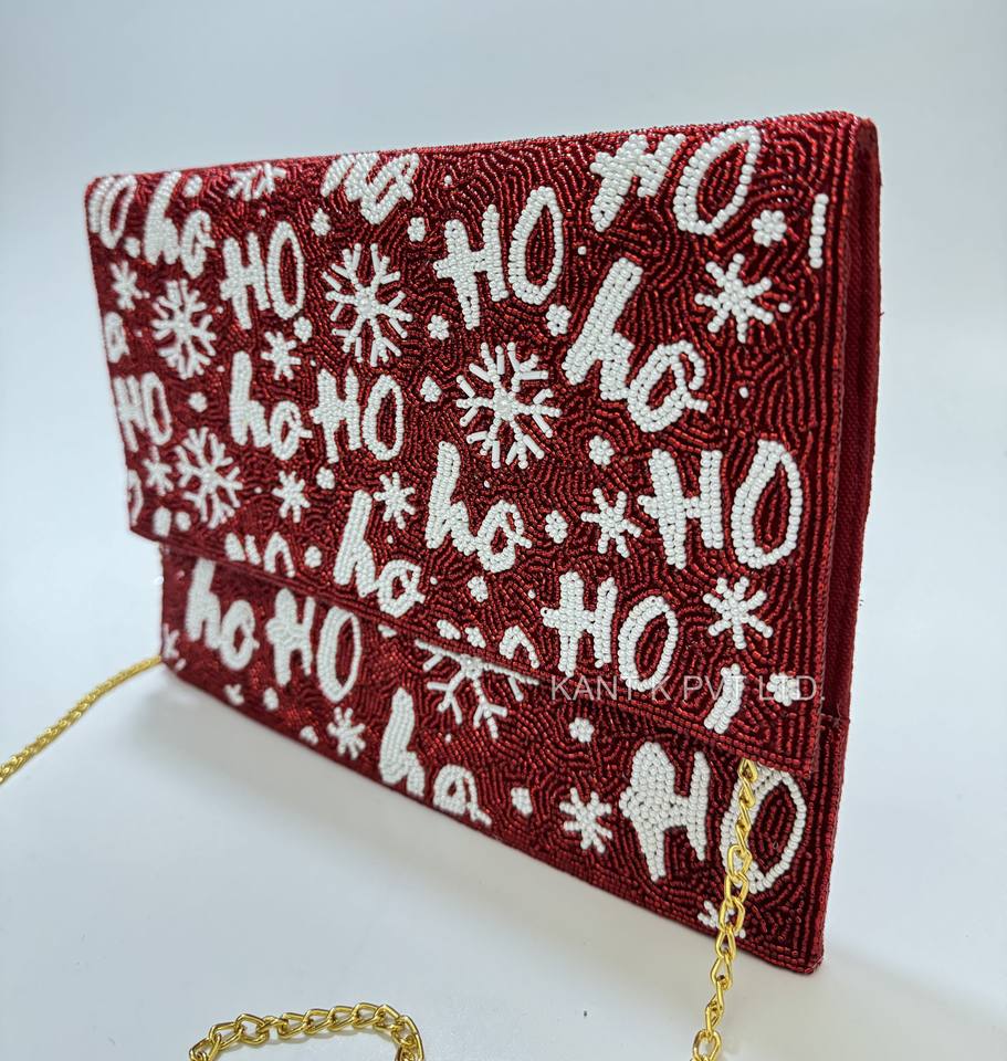Handmade Christmas Beaded Clutch Bag Festive Hand-Beaded Evening Purse