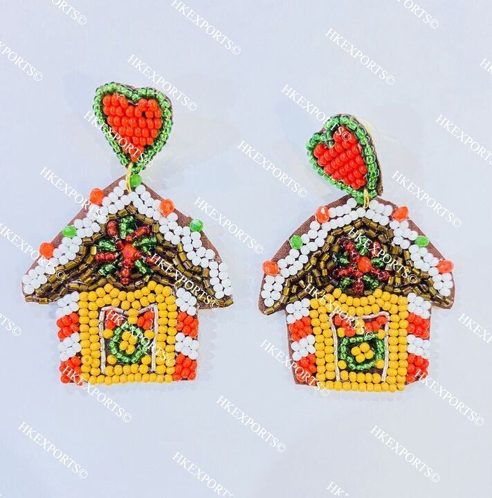 Handmade Christmas Gingerbread House Beaded Earrings Festive Holiday Jewelry for Women wholesale bulk
