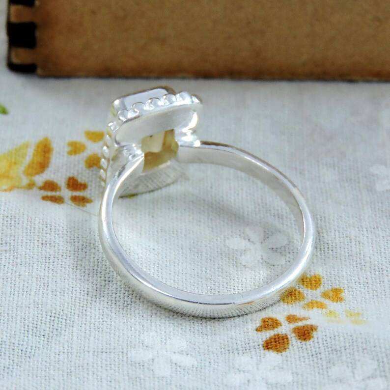 Handmade Citrine Ring in 925 Silver Square Cut Yellow Gemstone Birthstone Gift for Women