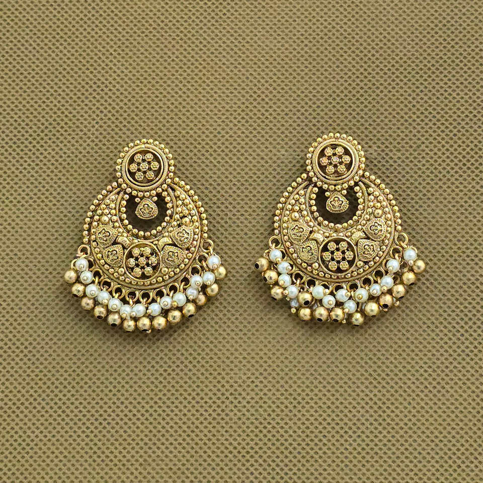 Handmade Classic Antique Fashion Hoop Earrings From India with Matte Gold Plating