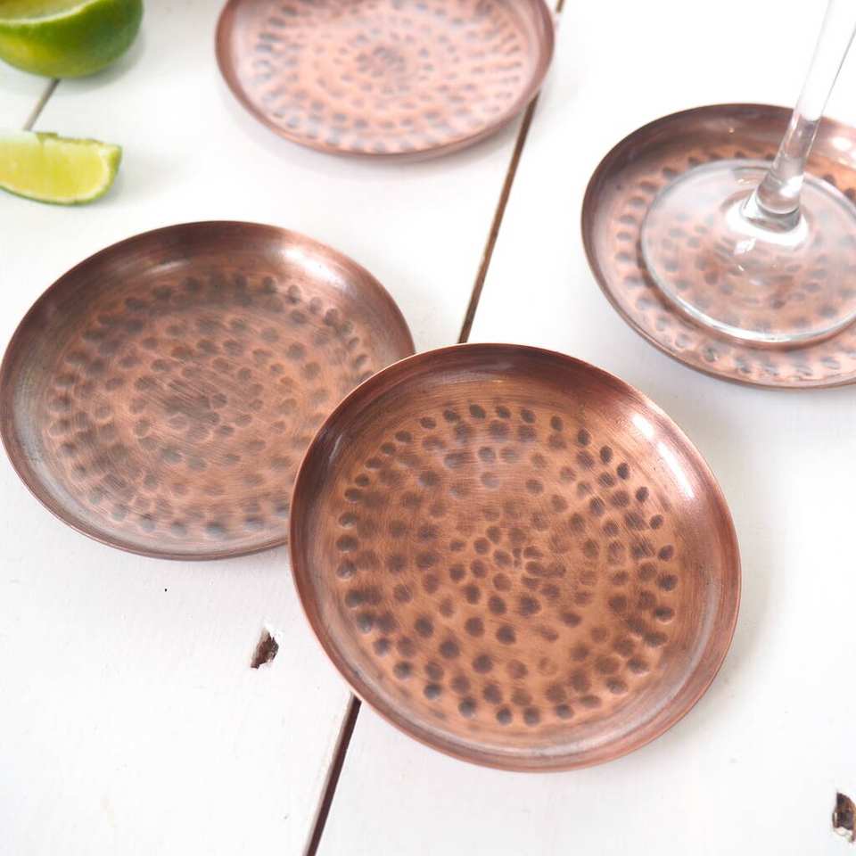 Handmade Classic Copper Coaster Customized Brass Table Mat Pad Natural Crafted Hammered Tea Glasses Cup Mug Metal Holder