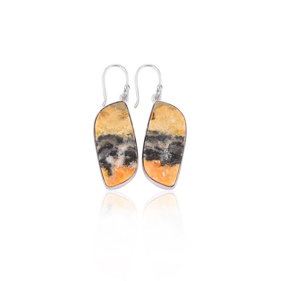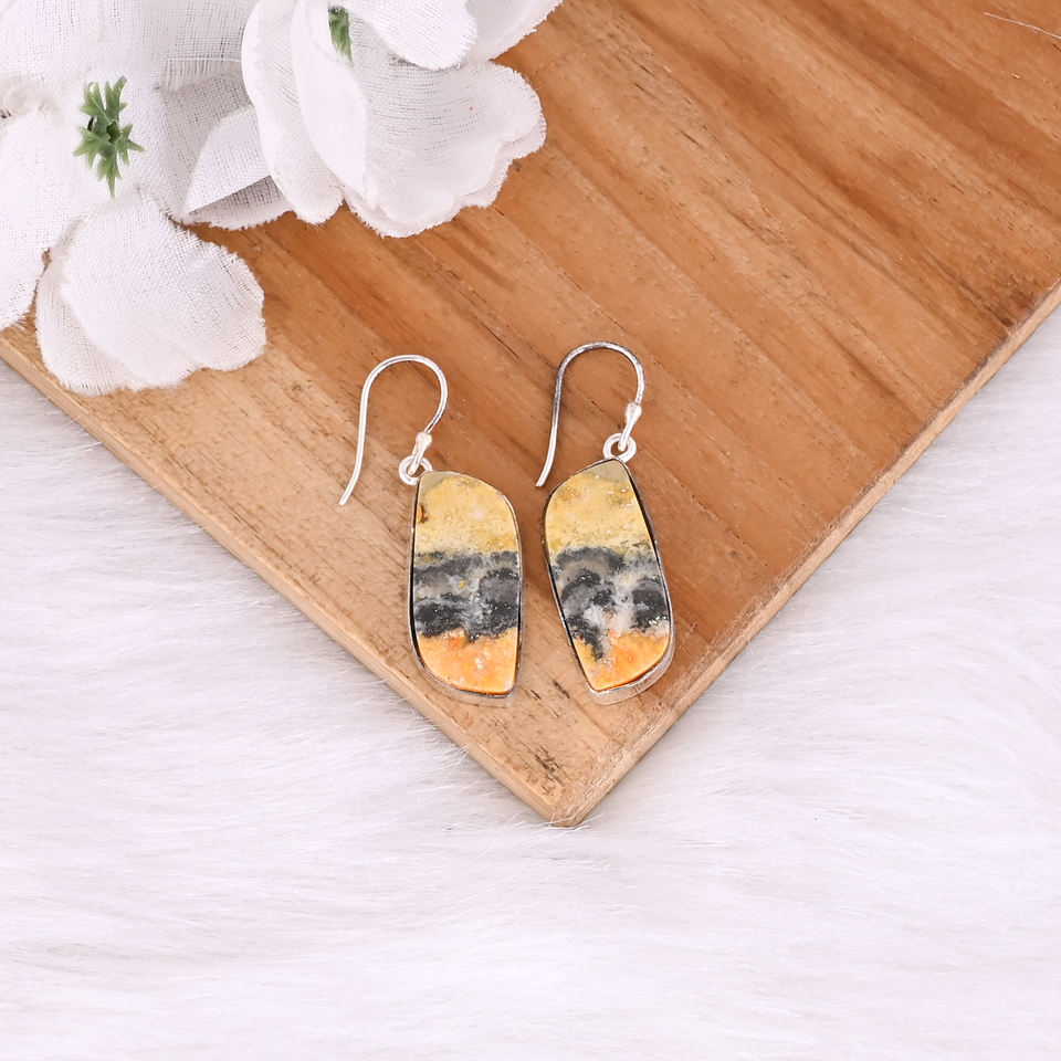 Handmade Classic Style Silver Plated Brass Earring Bumble Bee Jasper Gemstone Dangle Earring Oval Earring Wholesale Manufacturer