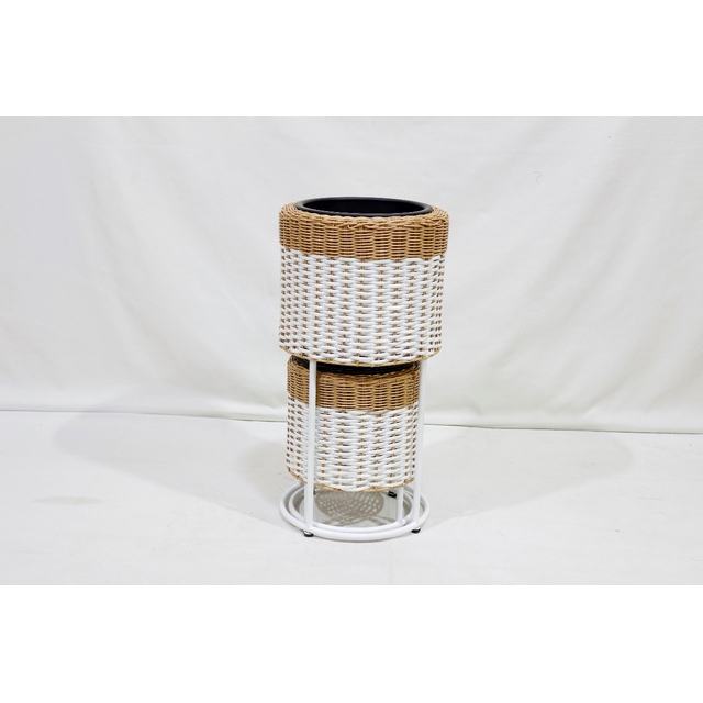 iron frame with metal stand, plastic black pot inside