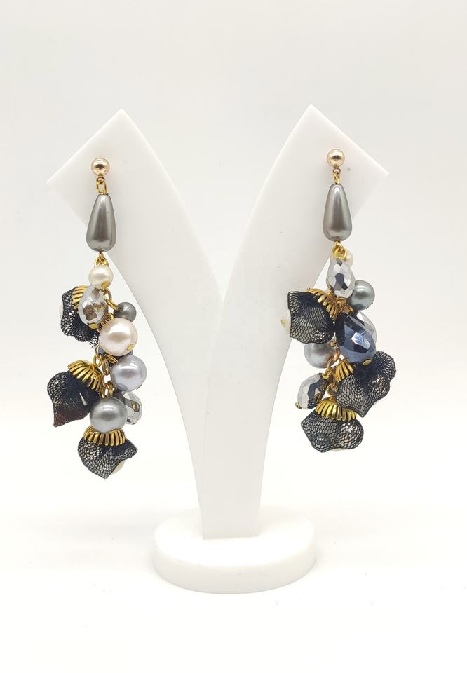 Product Name:White and Silver Pearl Beaded Necklace and Earrings
