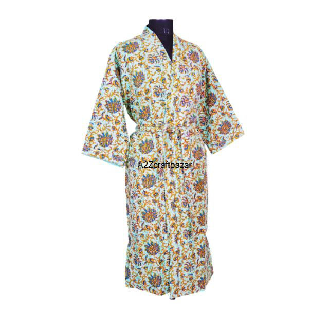 Handmade Classy 100% Cotton Bath Robe Indian Floral Print Handmade Kantha Stitch Kimono Cotton Kimono Bath Rob And Swim Wear