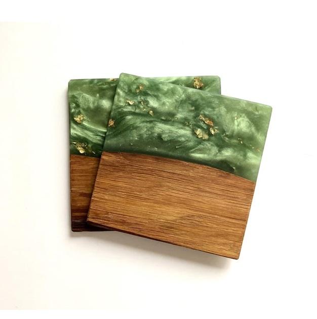 Handmade Cliff Cypress Tree Tumor Wood Epoxy Resin Coasters Non-Absorbent Table Protect Mats & Pads Beautiful Natural Design