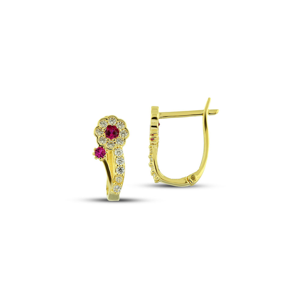 Handmade Clip-on Earrings Kids 14K Gold Plated Fine Enamel Work Trendy Style Featuring Flower Pattern Zircon Gift SEAGOLD Turkey