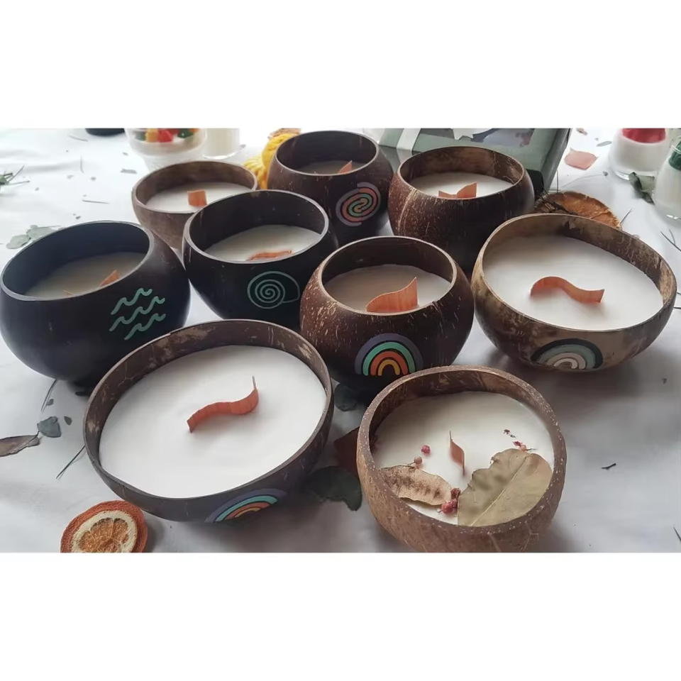 Handmade Coconut Shell Candle Bowl:D6.5 x H2 inches