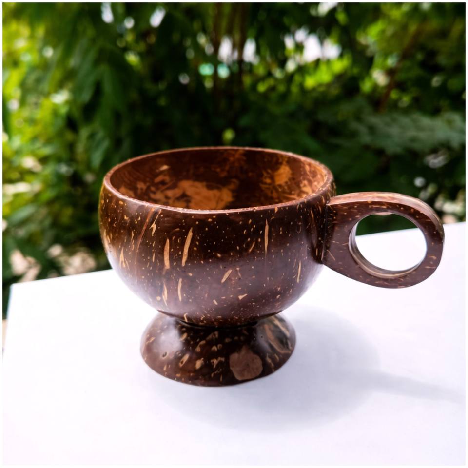 Handmade Coconut Shell Cup With Minimal Clean Drinkware Design Using Organic Tropical Material For Eco Dining