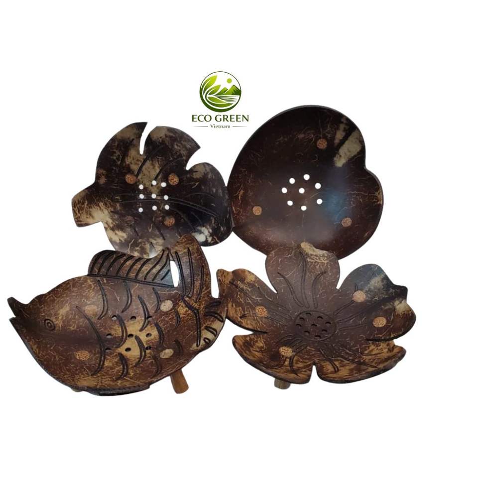 Handmade Coconut Shell Soap Dish Natural Wooden Soap Holder Eco Friendly Bathroom Drain Tray Leaf Shape Soap Saver