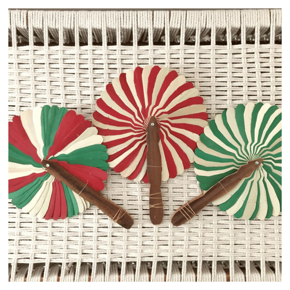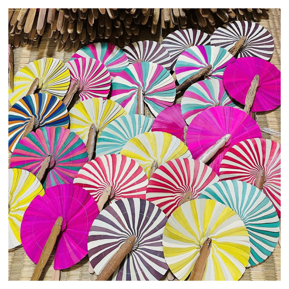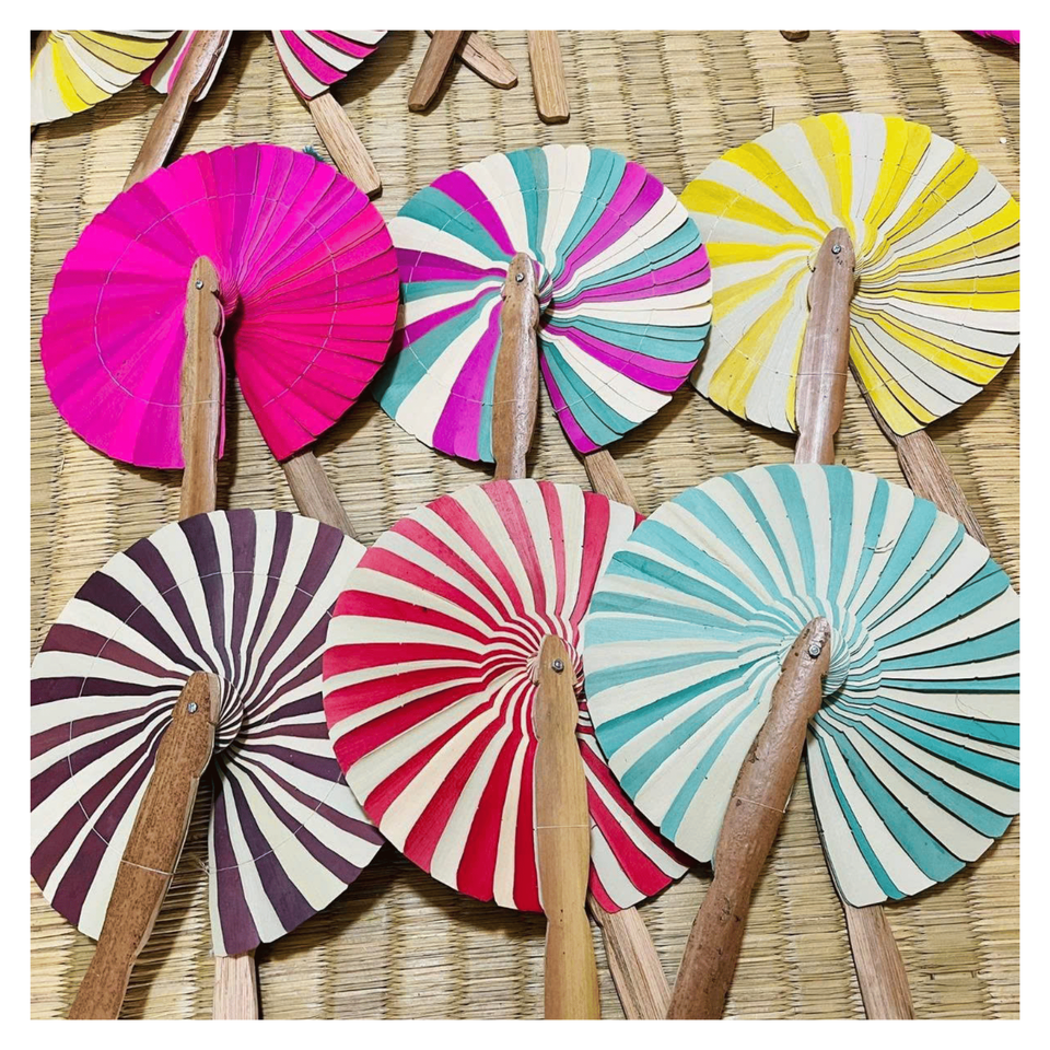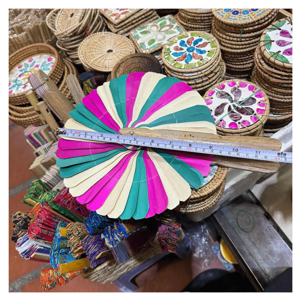 Handmade Coconut Wood Fan created from coconut wood frame and palm leaf for handheld cooling and traditional decoration, Vietnam