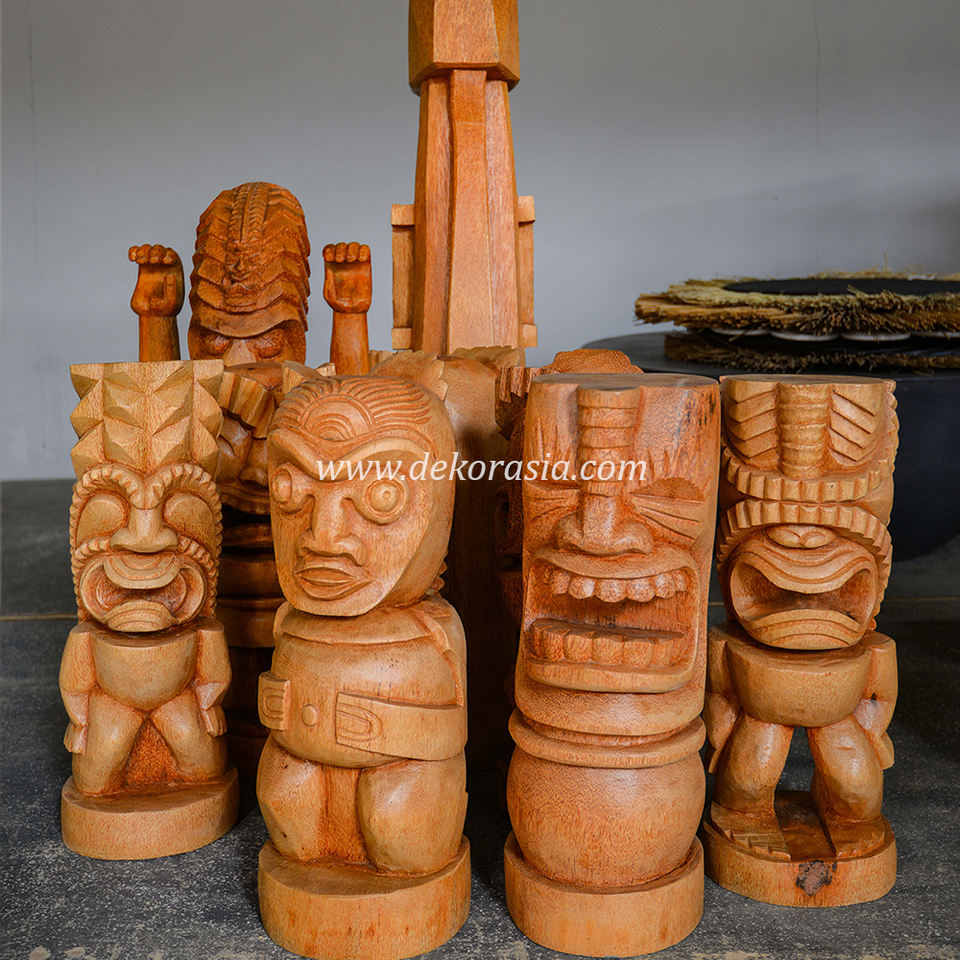Handmade Coconut Wood Tiki Totem Statues Eco-Friendly Art Deco Design for Home Decor and Outdoor Garden