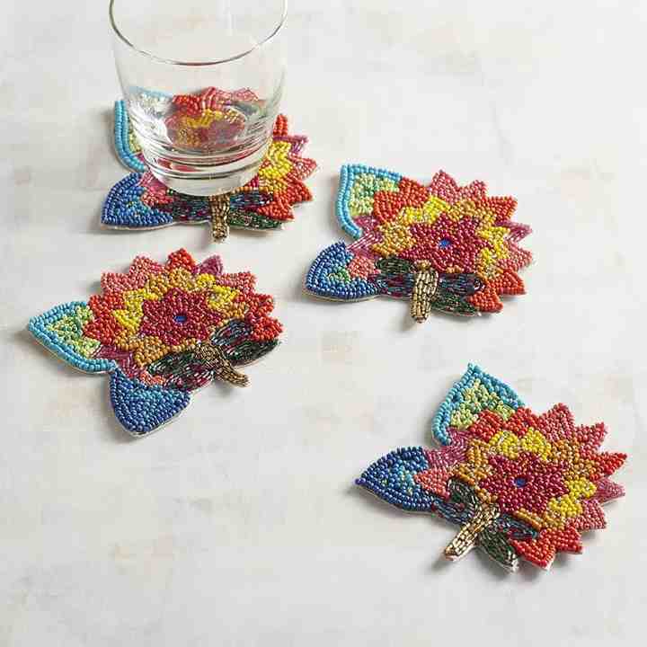 Handmade Colorful Beaded Flower Coasters for Dining and Home Decor Mats & Pads for Table Covering Colorful Beaded Mats