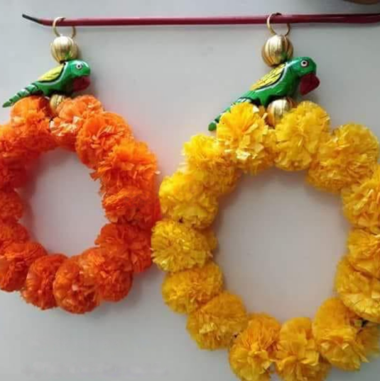 Handmade Colorful Marigold & Parrot Accent Ring Festive Diwali Hanging Party Favor for Festivals