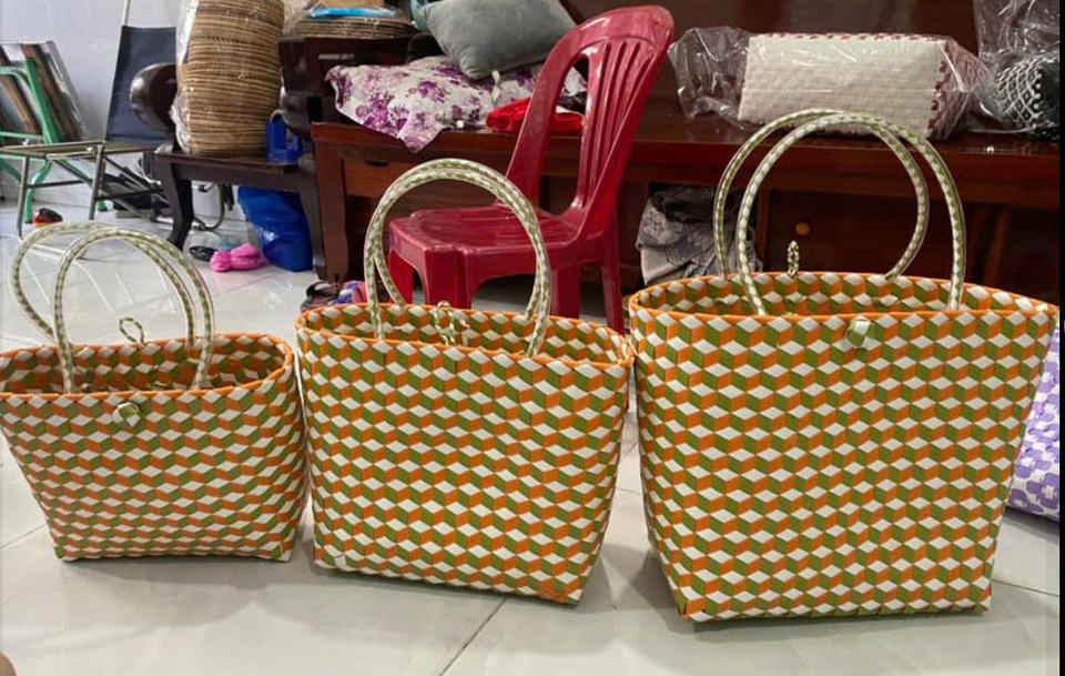 Handmade Colorful Plastic Woven Tote Bag Eco Friendly Recycled Straw Handbag for Beach and Shopping