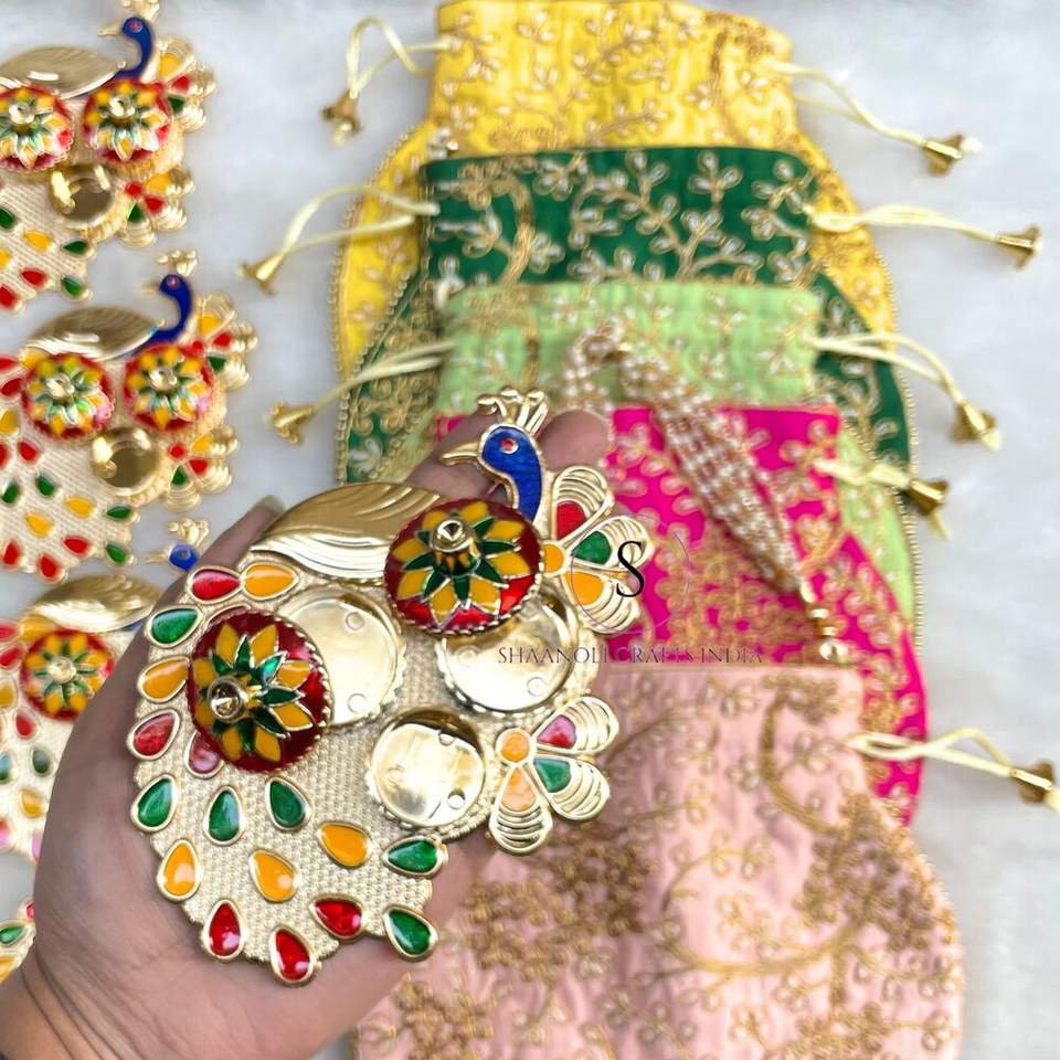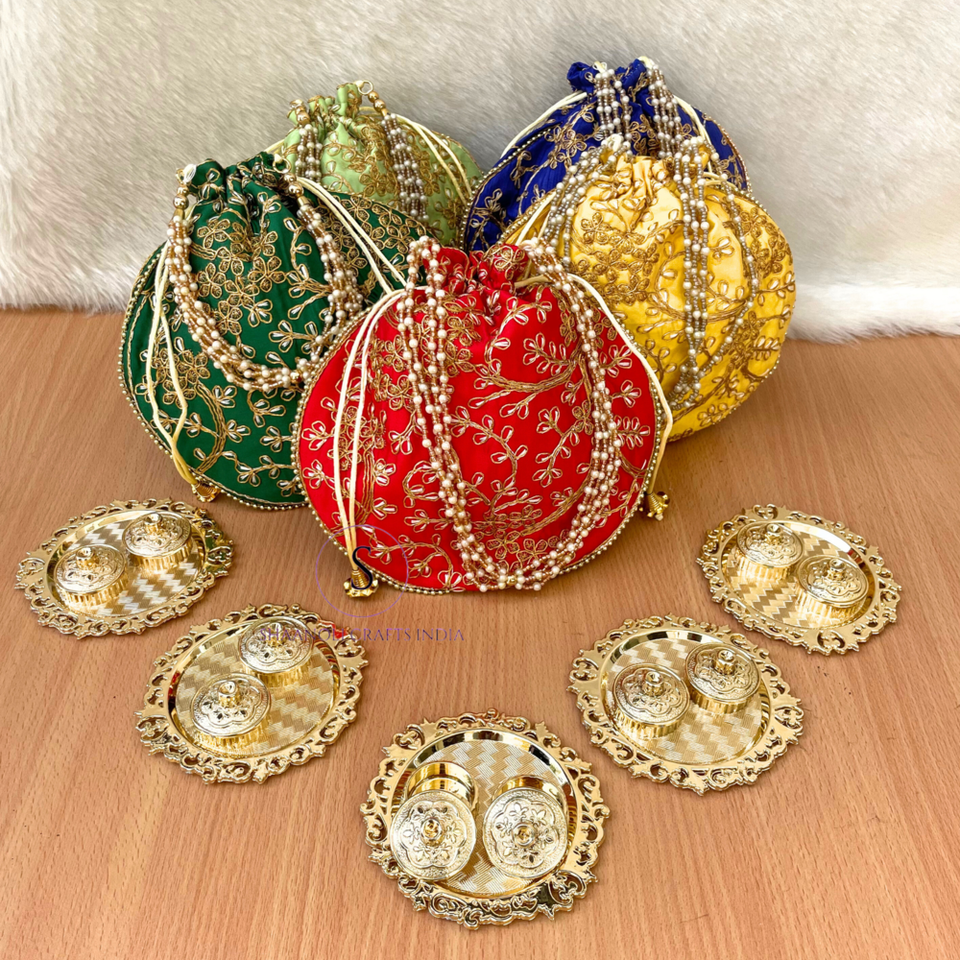 Material:Combo of Eambroided Potli bag with kumkum plate