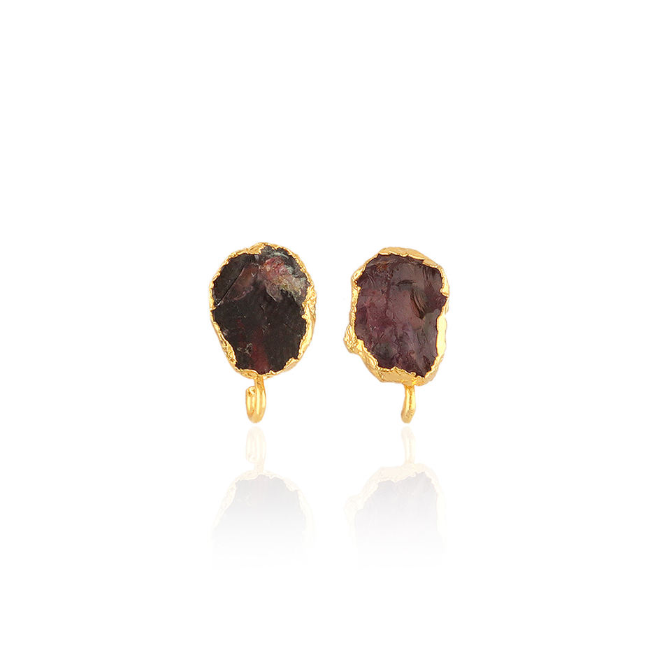 Handmade Copper Alloy Ear Post Connector Natural Freeform Uncut Raw Emerald Stud Earring Electroplating Edged Jewelry Making