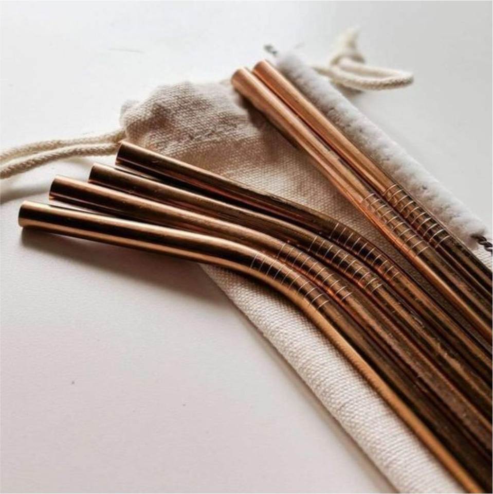 Handmade Copper Reusable Drinking Straw Set Eco-Friendly 5-Piece Bar Accessories Customizable Color & Logo Wine Saver Stopper