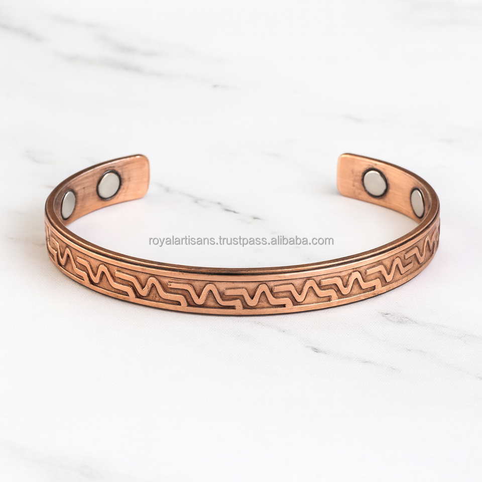 Royal Artisans BG773 Handmade Copper Magnetic Cuff Bracelet for Men Women Pain Relief Healing Therapy Adjustable Rose Gold