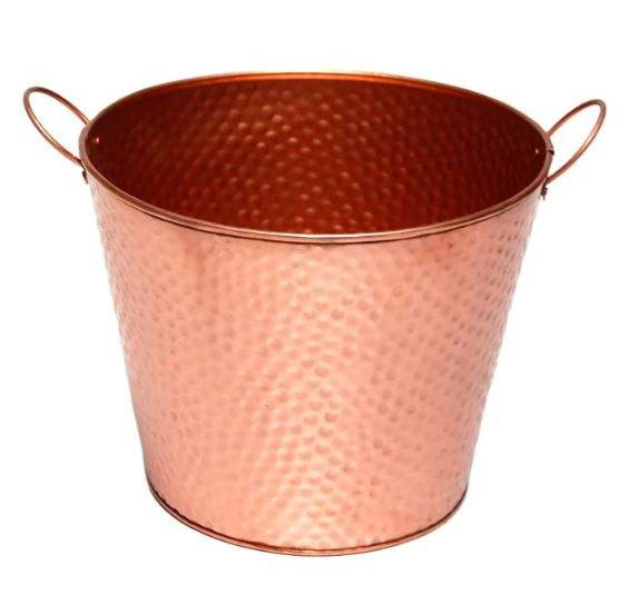 Handmade Copper Plant Pot Planter with Side Handle Woven Texture Garden Outdoor Home Decoration -India Home Craft