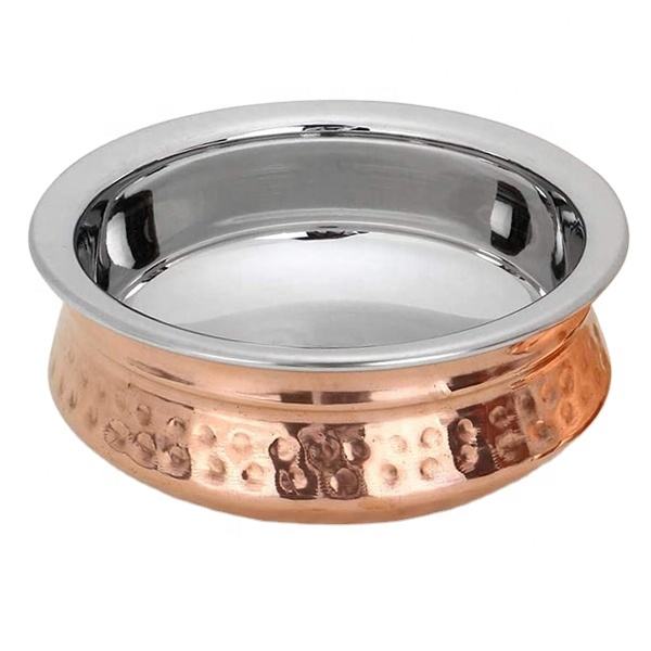 Handmade Copper/ Steel Cooking Handi Hammered with Shiny Polish Serving Dish and Cooking Pot for Kitchen