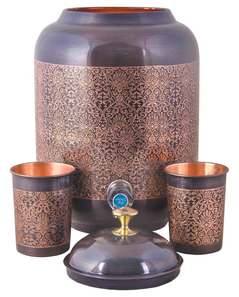Handmade Copper Water Container Screen Printing Design Anti-corrosion Coating HANDGRIP Lid-Kitchen Home Hotel Restaurant Decor