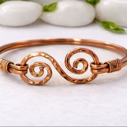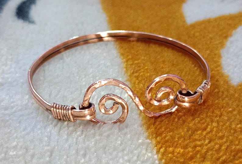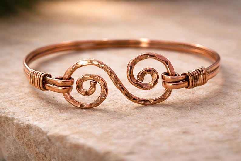 Handmade Copper Wire Wrapped Bangle: Rustic Hammered Boho Bracelet