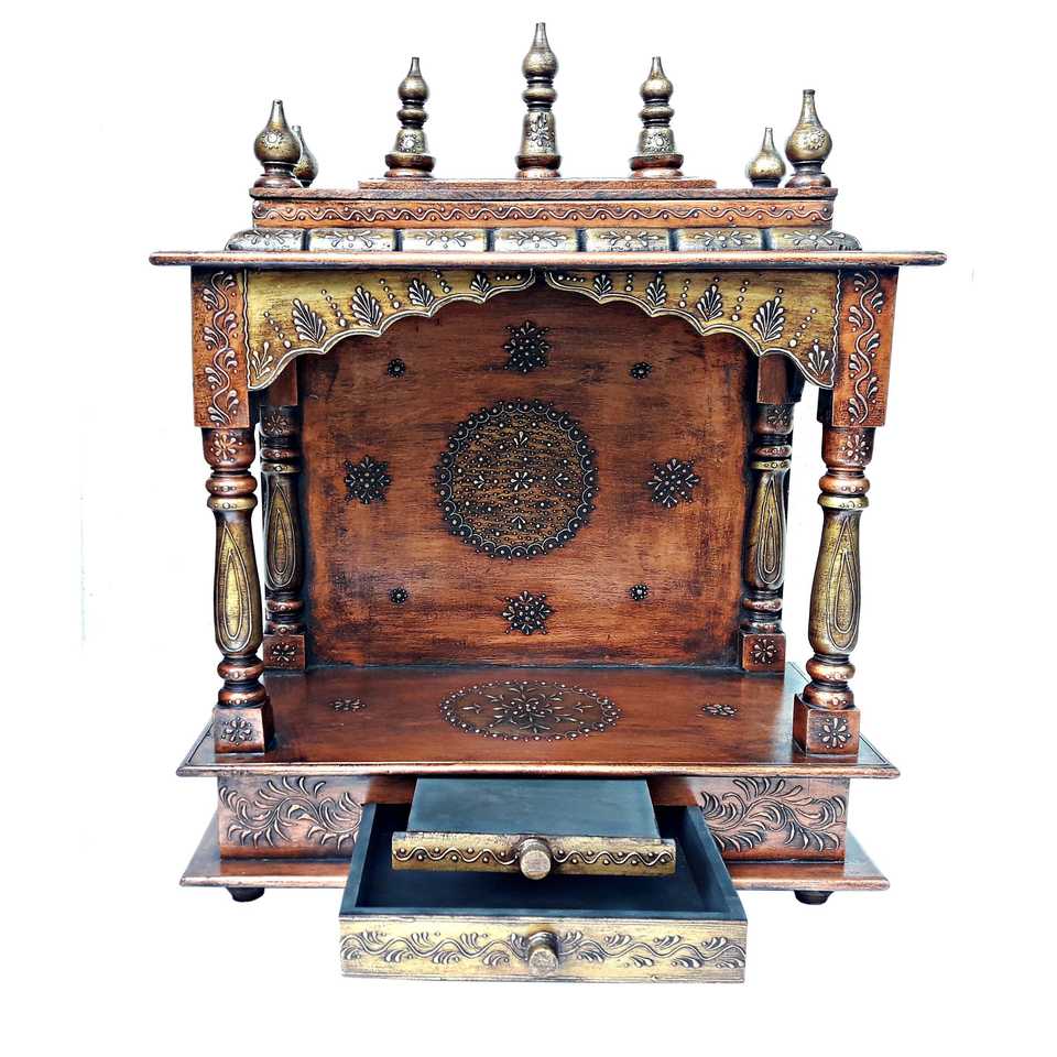Handmade Copper and Wooden Temple Mandir Home Decorative Item