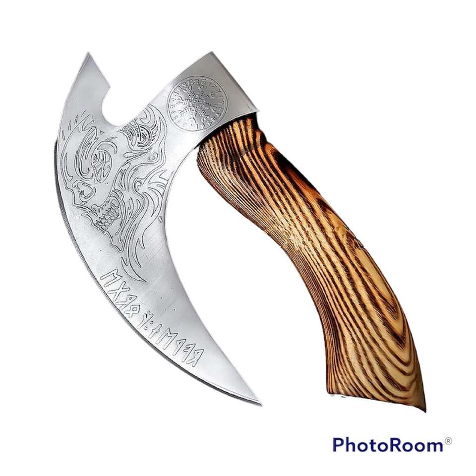 Handmade Industrial Corban High Carbon Stainless Damascus Steel Tomahawk Hatchet Viking Pizza Cutter Outdoor Woodcutting Ash