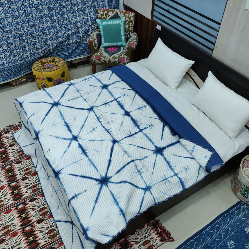 Handmade Cotton Flannel Quilt Red Block Printed Machine Bedding Set for Adults-King and Twin Sizes for Home and Hotel Use