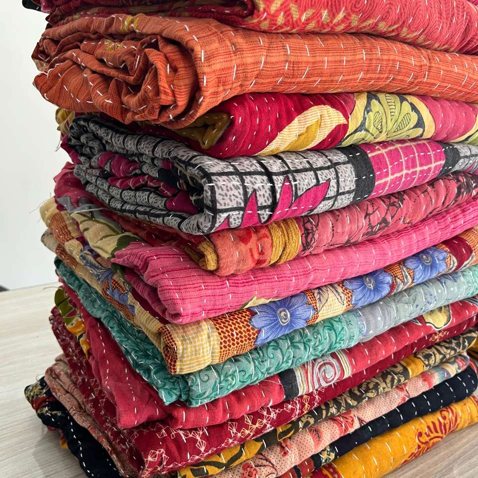 Handmade 85x55 Inch Cotton Kantha Quilts Reversible Bohemian Bedspread Wholesale Lot for Home Use and Hotels Bed Covers