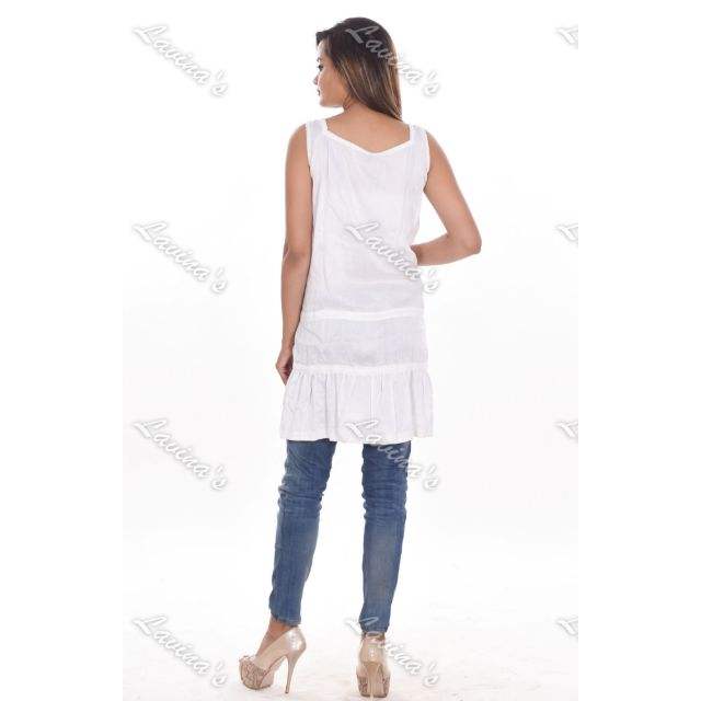 Handmade Cotton Long Top Women Wear Chicken Kurti Designer Sexy Sleeveless Tunic with Lace White Cotton Fabric Short Dress