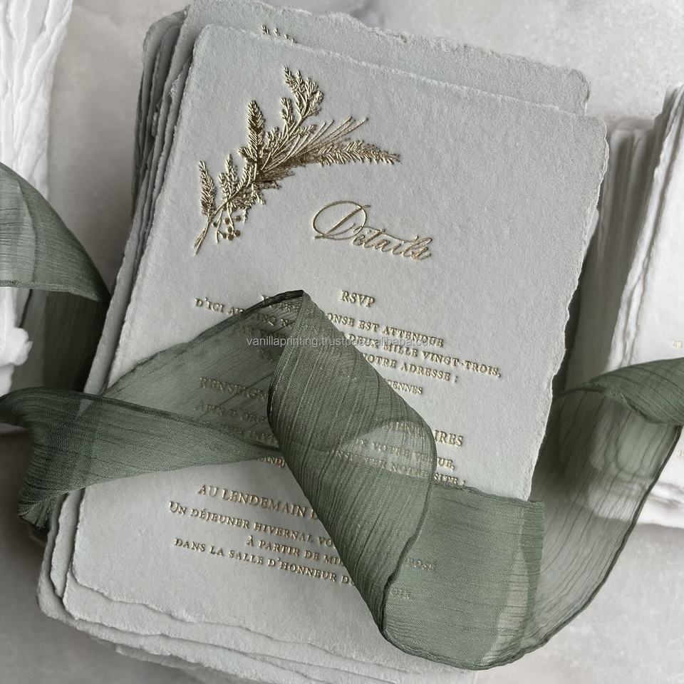 Handmade Cotton Paper RSVP Invitation Card Customized Deckle Edge Letterpress Design Exclusive Paperboard Printing Product China