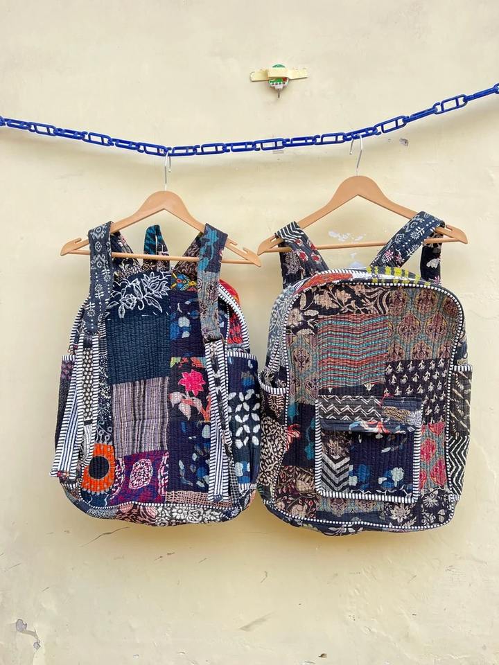 Handmade Cotton Patchwork Backpack Quilted Boho Indian Travel Bag Hippie Laptop Tote Colorful School Bag Festival Backpack