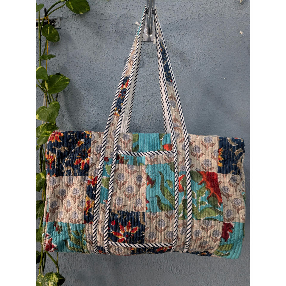Handmade Cotton Patchwork Quilted Duffle Bag Block Print Design Personalised Summer Winter Travel Market Women's Tote Bag