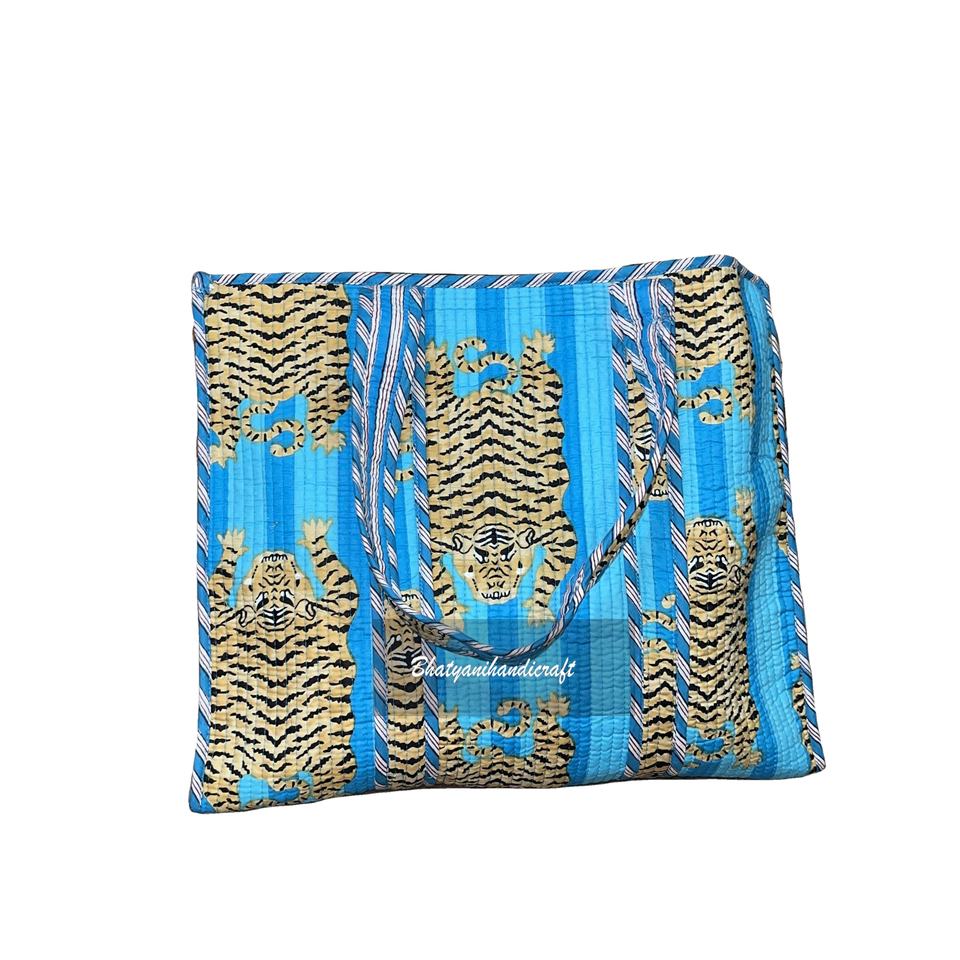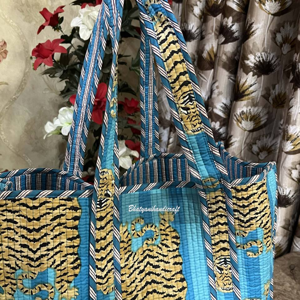 Handmade Cotton Quilted Women's Designer Tote Casual Vintage Style Beach Shopping Bag Two Customizable Open Shoulder Carry