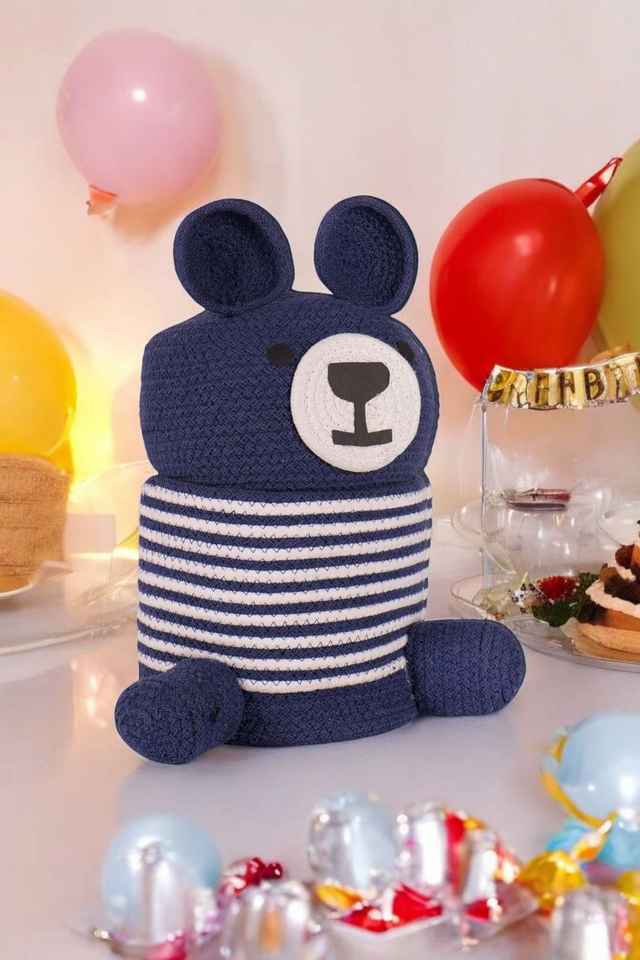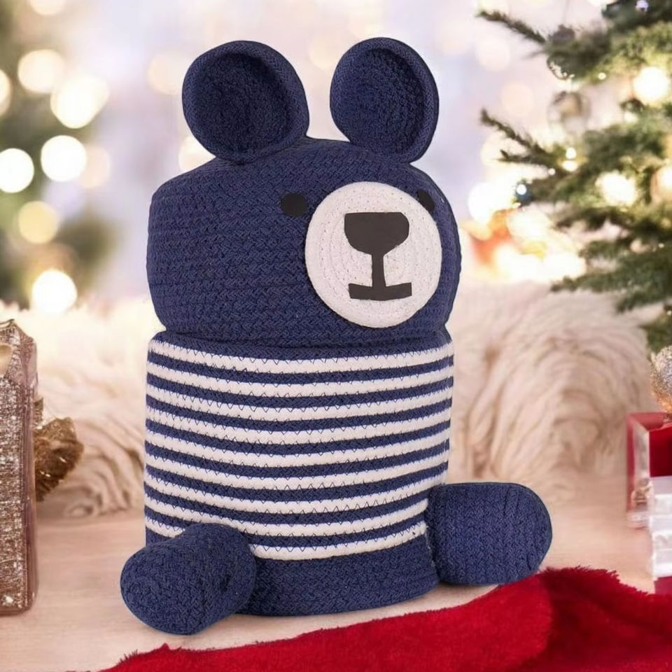Handmade Cotton Rope Teddy Shape Storage Basket Nursery Kids Toy Organizer with Clothing Use Playroom Stocked Basket