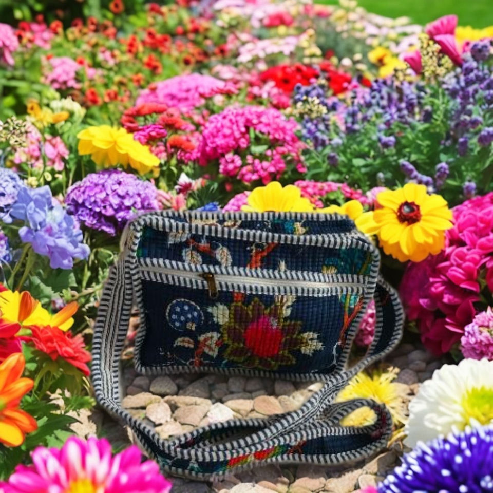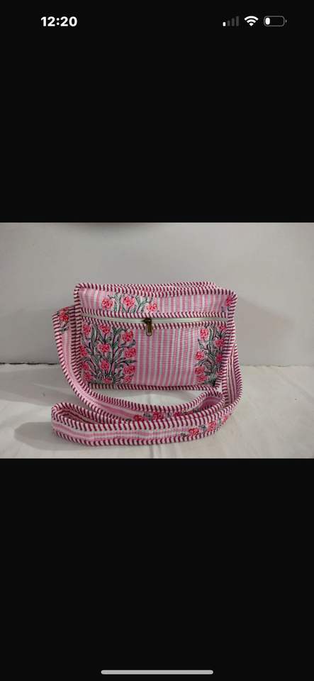 Handmade Cotton Strap Handle Floral Block Printed Sling Bag Lady Fashion Women's Crossbody Zipper Closure Party Wear Vintage