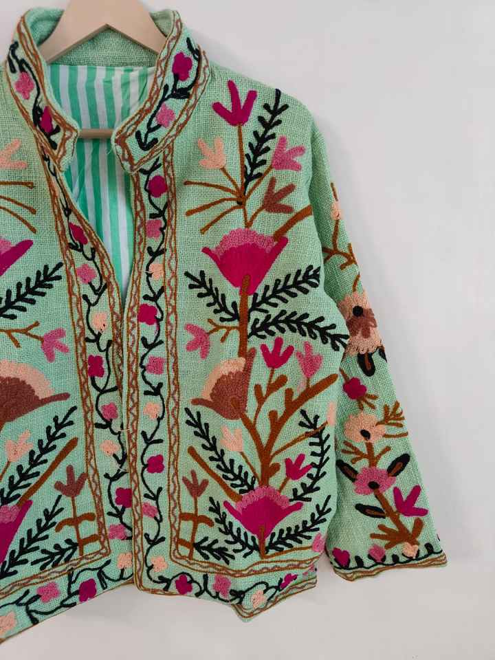 Handmade Cotton Suzani TNT Jacket Boho Embroidered Tribal Coat Vintage Uzbek Style Festival Outerwear