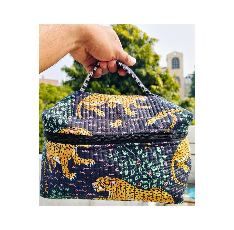 Handmade Cotton Vanity Bag, Large Makeup Pouch, Personalized Travel Toiletry Bag, Organic Mini Cosmetic Pouch, Quilted Cotton