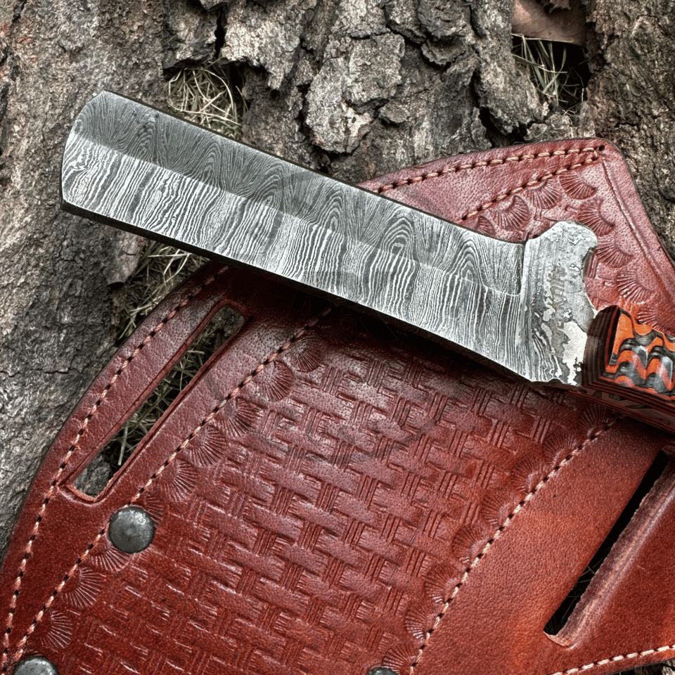 Handmade Cowboy Bull Cutter Knife | Full Tang Damascus Steel Cleaver Outdoor Utility Knife Leather Sheath Ultra Razor Sharp OEM