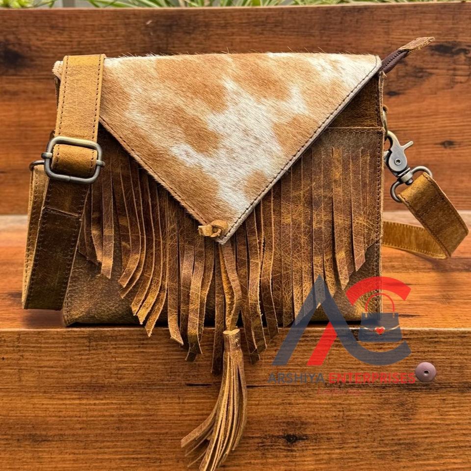 Cowhide Boho Chic Fringe Crossbody Bag